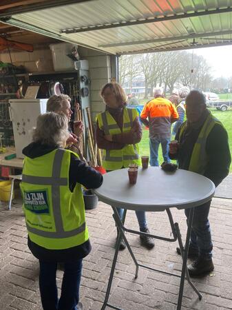 De burgemeester heeft de schoonmalers/vrijwilligers bezocht en bedankt voor hun inzet.